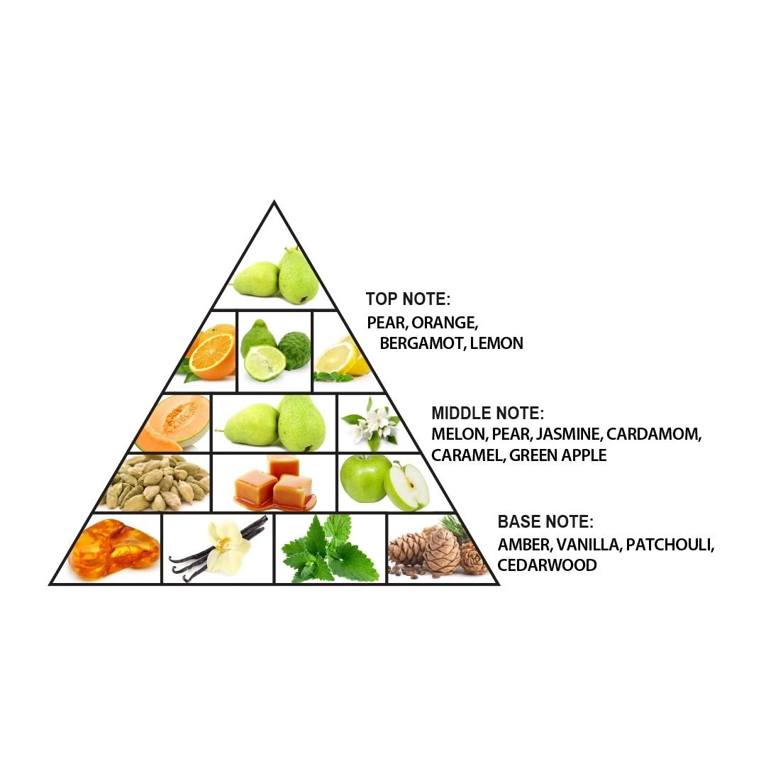 Middle notes: Melon, Pear, Jasmine, Cardamom, Caramel, Green Apple