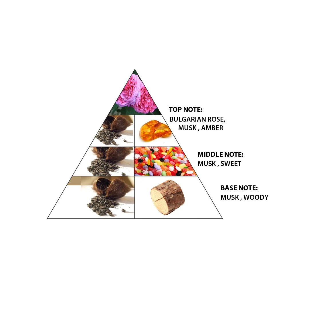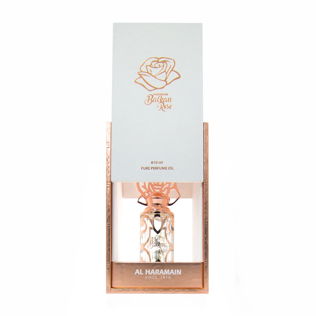 Haramain Balkan Rose takes you on a journey of scent through a fragrant landscape. The adventure begins with the scent of Bulgarian rose, mingling with the rich temptation of musk and the warm embrace of amber. As the fragrance further unfolds, it reveals a heart that is both sweet and musky, wrapping you in a soft yet captivating embrace.
