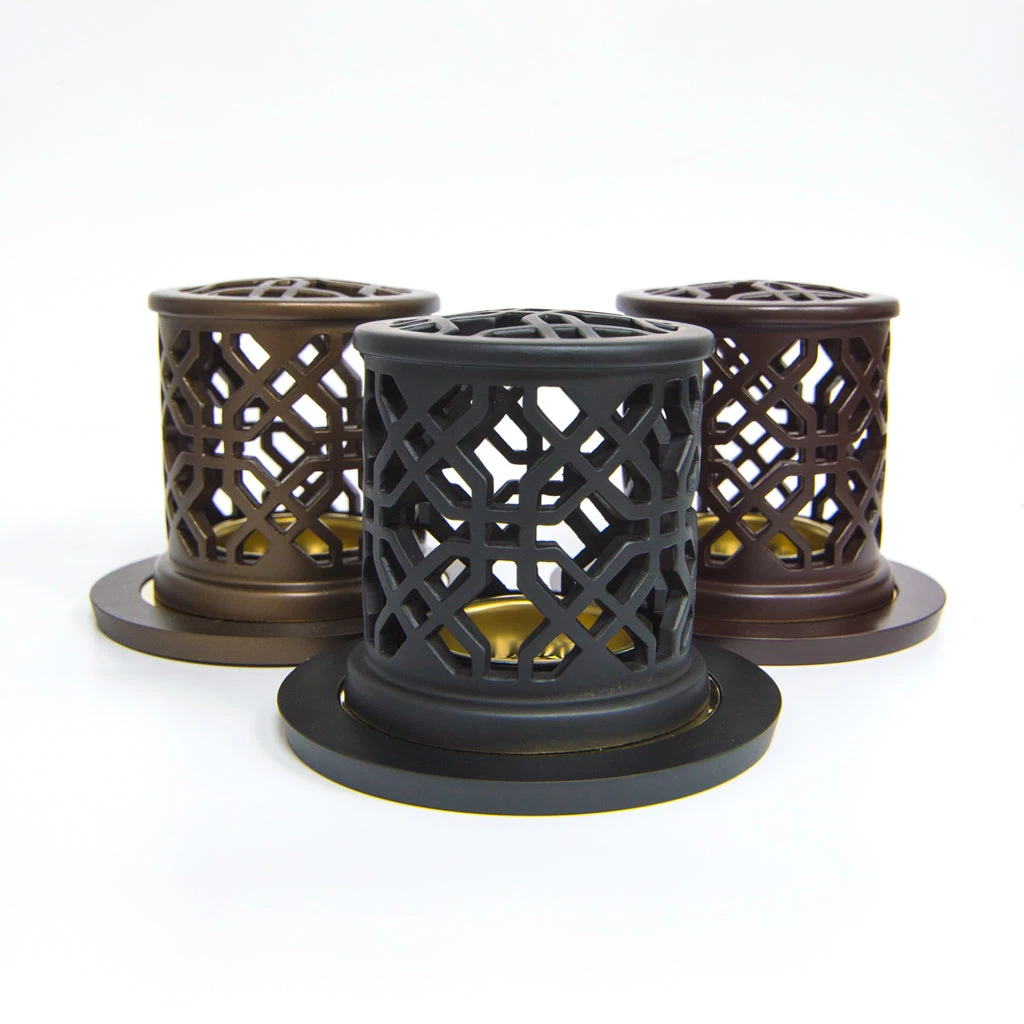 Bring a taste of the middle east and surround yourself with the relaxing aromas of Bukhoor with this Decorative Polyresin Burner with a removable perforated tray for burning coal, with a perforated Polyresin magnetic lid, available in a range of colours.