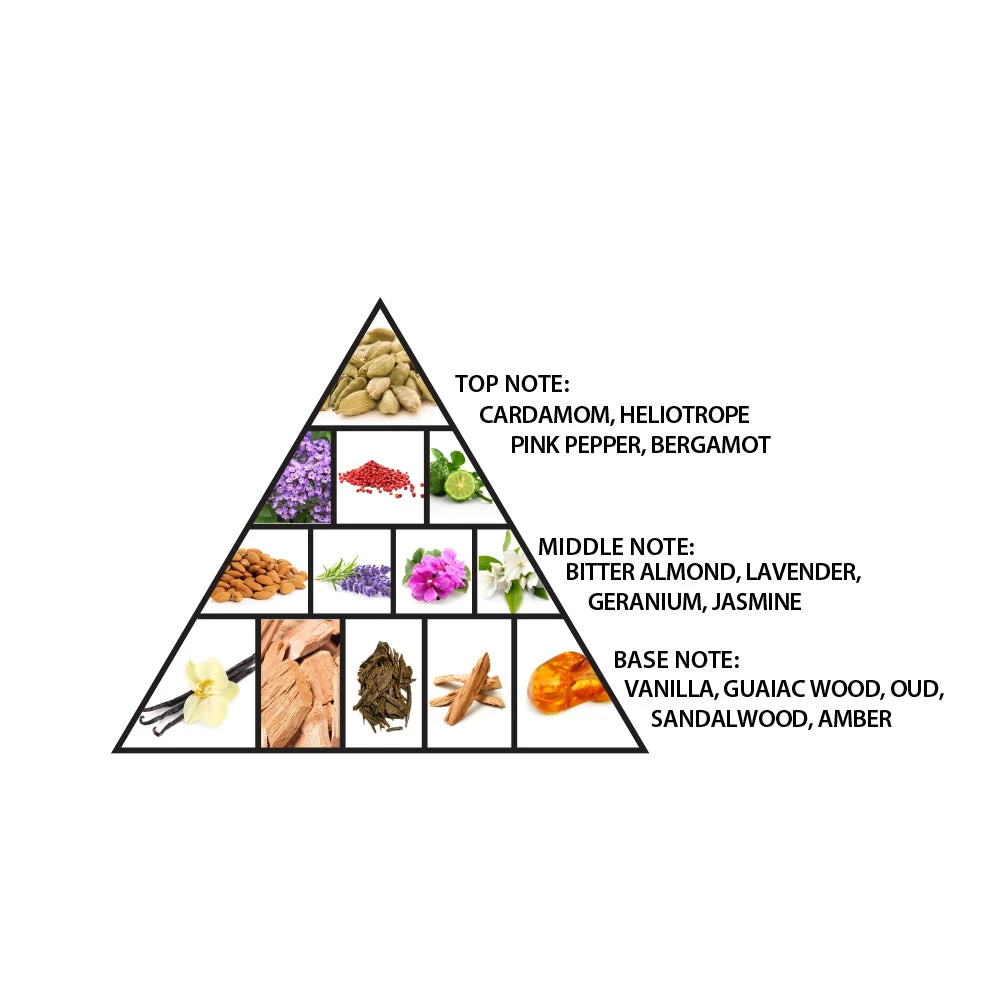 Top note: Cardamom, Heliotrope, Pink Pepper, Bergmot