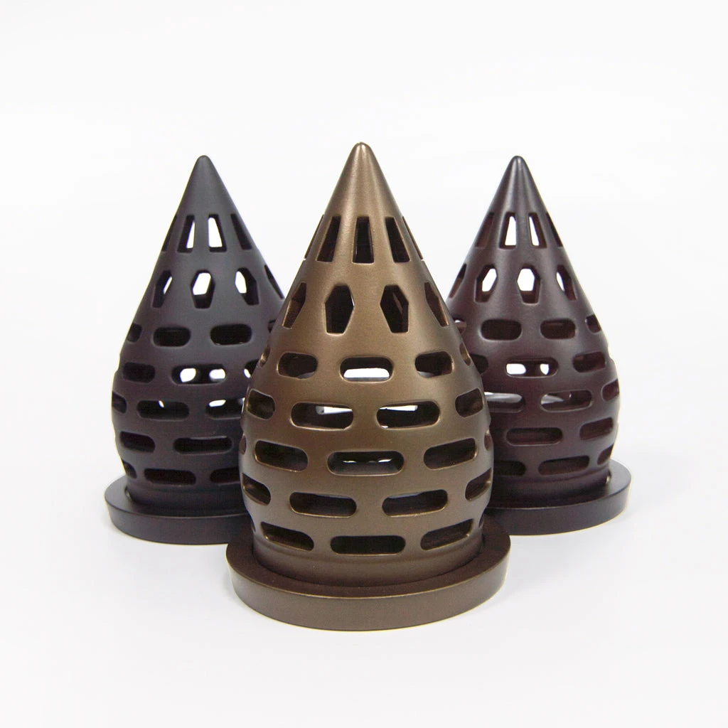 Bring a taste of the middle east and surround yourself with the relaxing aromas of Bukhoor with this Modern Cone Burner with a removable perforated tray for burning coal, and a removable perforated Polyresin lid available in a range of colours.