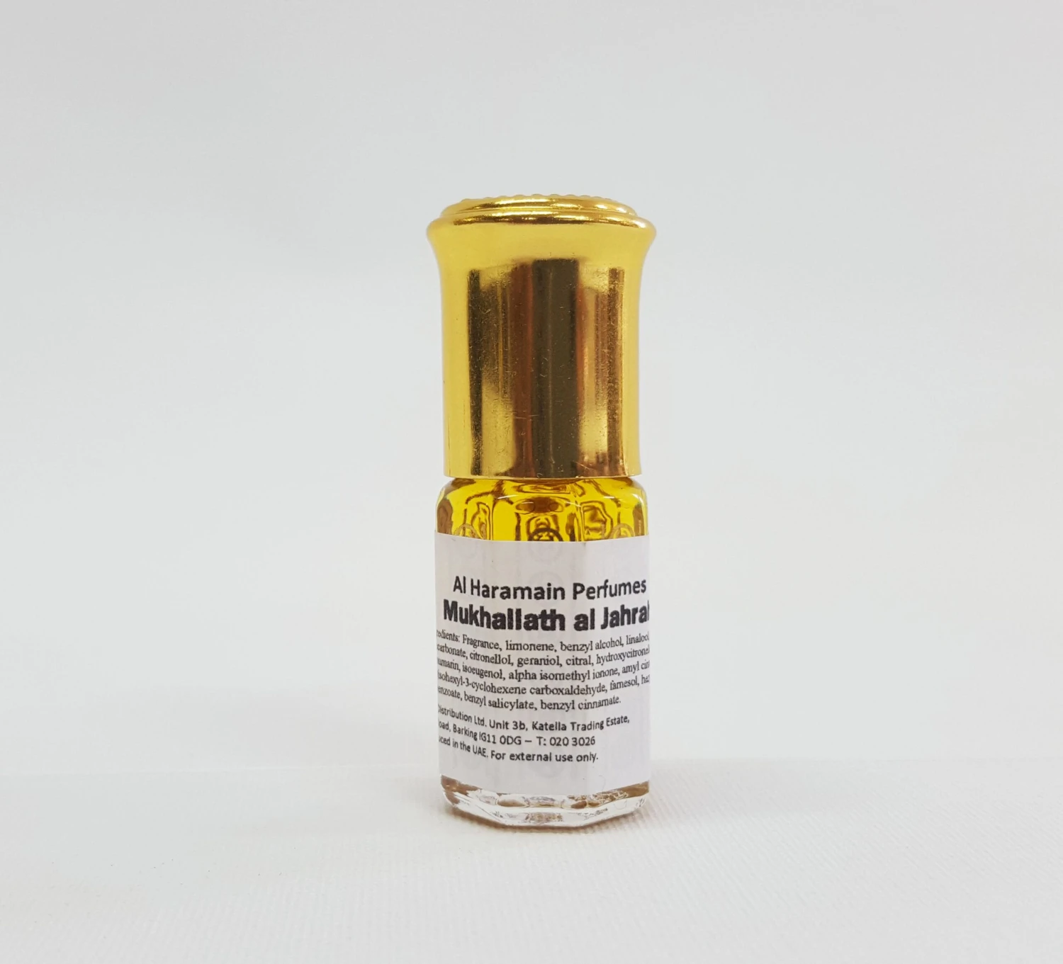 Mukhallath Al Jahrah from Al Haramain Perfumes is a sweet and musky loose fragrance. With deep oriental notes, it is a graceful combination of Amber, Musk and Jasmine. This perfume comes in a beautiful, patterned bottle.